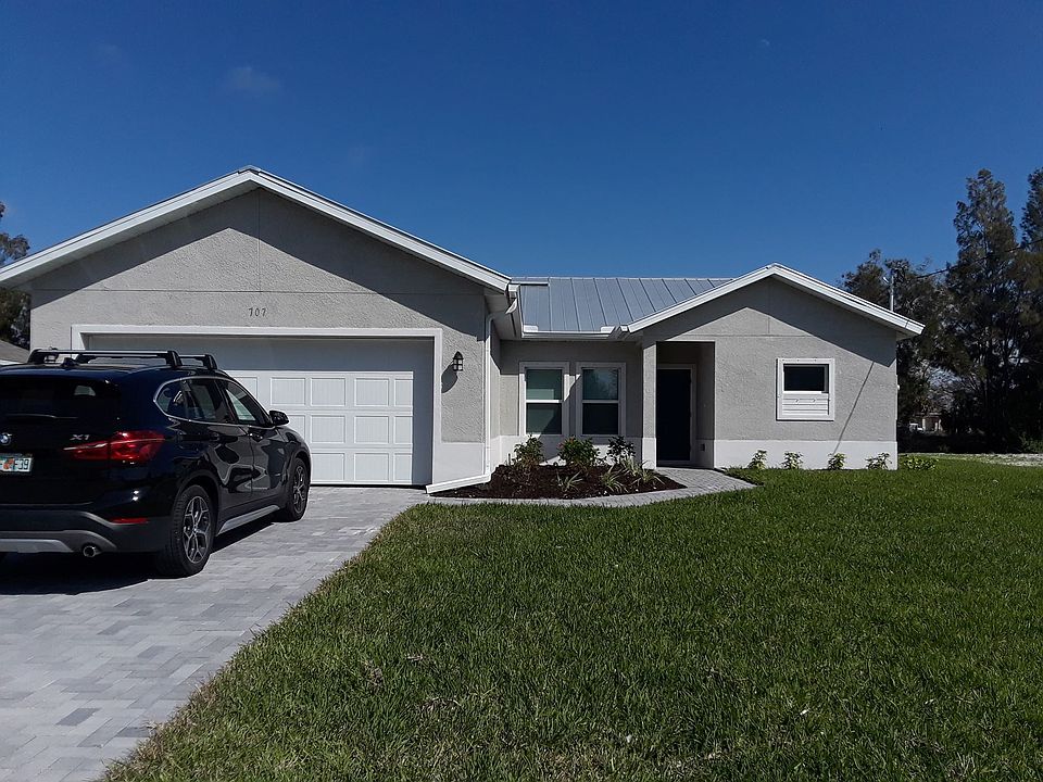 NEW CONSTRUCTION HOME- MOVE IN READY. Perfect starter home on freshwater canal. This freshwater 1435 sqft. 3 bedroom 2 bathroom home is located close to Chiquita Blvd.and Pine Island Rd. Features include: Stainless Steel appliance package, granite countertops in kitchen and bath, flooring throughout the house, Vinyl insulated windows, $20,000 in upgrades including, metal roof, the Hercuwall system which boasts up to 50% lower electric than CBS built homes, and many other features. All offers will be considered so please bring you best offer.