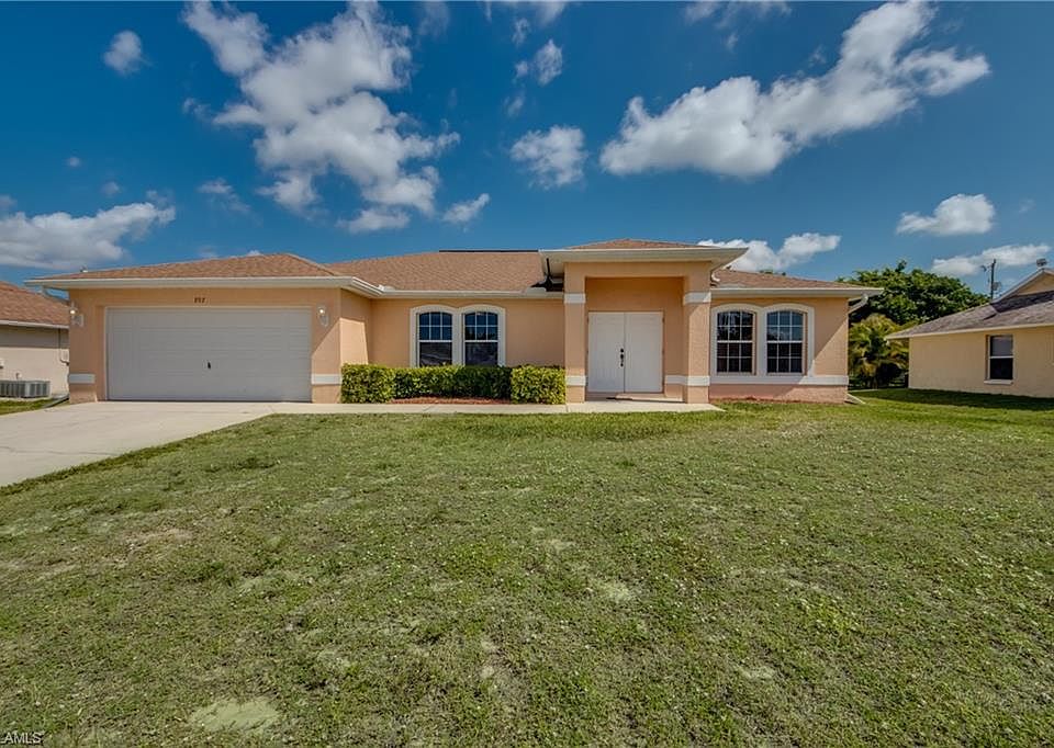 Looking for a Cape Coral home with a fenced yard that is perfect for your growing family? This cute Osprey model built in 2005 by Advantage Builders of America has 3 beds, 2 baths, and a formal dining room that was converted into a den. Large living room in the front opposite of the den is perfect for a play room or 2nd living area. The light and bright home presents an open floor plan between the kitchen and family room. The kitchen cabinets provide plenty of storage and are complimented by stainless steel appliances. The home has a large Master bedroom, and accompanying bathroom that features a garden tub and separate shower. Head out back and enjoy Florida living under the screened lanai. Check out this wonderful home if you love living in a great 33991 neighborhood that is walking distance to elementary schools, middle schools, and under 1 mile to Cape Coral High School. Starbucks shop less than 2 miles away, close to many restaurants, and shopping also nearby. located near intersection of Veterans Pkwy and Skyline Blvd. Carrabba's Italian Restaurant just up the road. Flood insurance NOT required by current lender as it sits in an X zone. Newer Ac System, tank-less water heater, and city water and sewer.