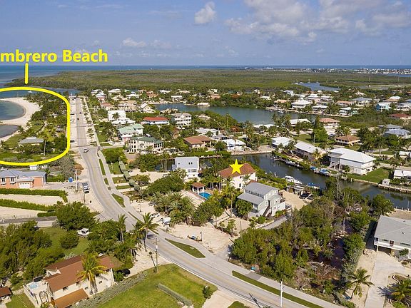 Escape to paradise with this gorgeous canal-home just across from Sombrero Beach! The stunningly unique exterior draws you in to its resort-like pool equip with swim up bar, cabana & built-in spa. Stay poolside year round with its new heating & cooling system. The paver pathway leads you around to a 2nd refreshing pool overlooking the lushly landscaped yard and down to the 75 ft. composite dock, any angler is sure to appreciate the ocean access that's just around the corner! Upon entry, the soaring ceilings and grand staircase will immediately impress. Elegantly designed, the first floor houses the exquisite granite kitchen and open living spaces boasting a two-story fireplace. Completing this floor is a master suite with veranda & spacious 4 piece bath,