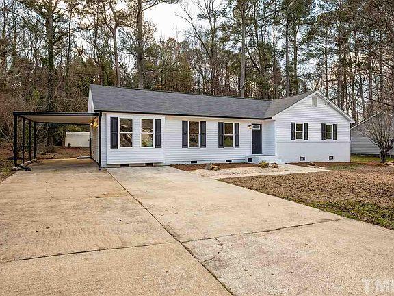 Beautifully Renovated home in Garner. 3 Bed, 3 full baths, open floor plan, tons of natural light, granite countertops, stainless steel appliances, cabinet space, master bedroom with spacious walk in closet, dual vanities, walk in tile shower. Screened in back porch with patio, large yard, storage shed, carport covered parking. Laundry/utility room with storage.