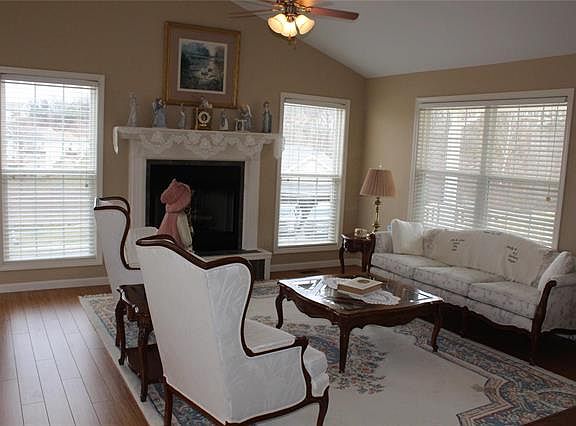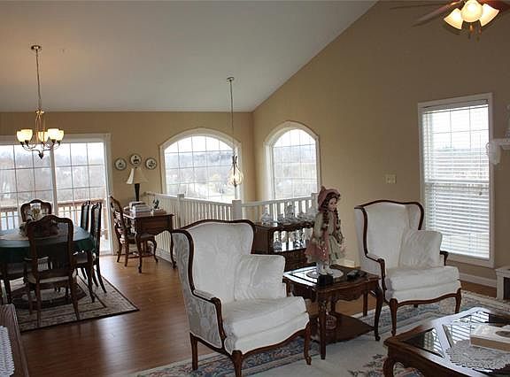 Stunning Atrium Ranch with great views, Covered front porch, Large deck off back of home, Open Floor plan, Open Staircase to lower level, large windows to let lots of light in to make home bright and cheerful, Gas Fireplace in Great room, Large Kitchen with custom cabinetry with crown molding and Breakfast area, Formal Dining room( Is was the 3rd bedroom which sellers have converted to dining), Large Master suite and bath, and closet with organizers, Lower level finished with Family area, Bar area, Bedroom, full bath, storage area and walk -out. Subdivision has paved walking trails, and stoked lake. Convenient to Hwy, Park, Pool, Shopping and Schools. In very nice condition --- Come See!