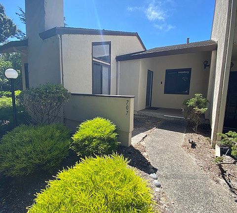 Lovely two-bedroom two bath Pacific Grove Condo! Approximately 1,135 square feet of living area, the entrance to the unit features a lovely patio surrounding the front door, which opens to a spacious living room with vaulted ceilings and a cozy fireplace. A couple steps down from the living rooms is the dining room and recently updated kitchen. The kitchen features a double oven, an electric range, ample cabinet storage space and a split farmhouse sink. A door from the kitchen leads out to the spacious private patio. The front bedroom has a large closet with plenty of storage space. The large hall bathroom has a shower over tub with jets and a closet with stacked laundry. Large master bedroom with plenty of closet storage, mirrored doors and a sliding glass door to the private patio. The master bathroom is sizable with a walk-in shower. There is a detached two car garage just off the patio. Excellent location - walking distance to grocery store, restaurants and schools. Tenant responsible for utilities, except water, sewer and basic gardening. Detached Two Car Garage. Courtesy Washer and Dryer in bathroom closet. No smoking. Sorry, No Pets. Available Now! Tenant responsible for utilities, except water, sewer and basic gardening.