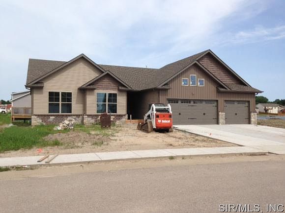 You will be impressed the moment you walk up to the stamped concrete porch and into this Crafsman style split bedroom ranch. Open floor plan features private master suite with studio vaulted ceiling, private master bath with double vanity and huge walk-in closet. Living room with vaulted ceiling and brick fireplace is open to spacious kitchen with eat-in area and handscraped hardwood runs throughout. Kitchen also features an abundance of maple cabinets and large deck right off breakfast area for your morning coffee. Gas line run to deck makes grilling simple and worry-free. Ceramic tile accentuates all baths, laundry and mud room. Lower level features a large family room, 4th bedroom and full bath. Entertain family & friends on the large partially covered deck or the lower level patio overlooking stocked lake! Beautiful house, tons of square footage and a 3-car garage makes this new home a winner! Builder reserves the right to modify floor plan without notification. Taxes on lot only.