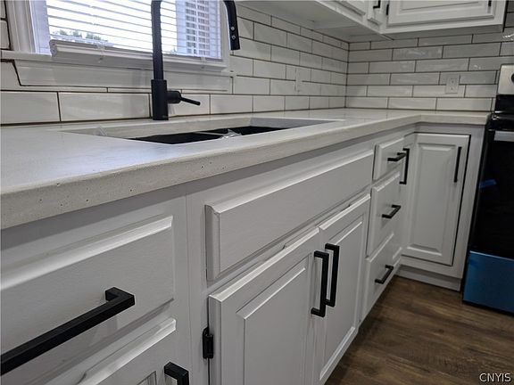 Built in 1956 and offering one level living in a most spectacular way - this chic ranch-style home was recreated in a most stunning way! It's charming curb appeal is as impressive as the caliber of work found within it! STUNNING choice in design, and timeless selections in upgrade are found throughout this home as it was transformed into the modern day retreat that it now is! Although just under 1,000 sq ft., the house feels much larger -- offering three bedrooms, one full bath with formal dining, an enclosed sunporch and dry basement for storage or even the possibility of creating additional space to enjoy! Property updates and highlights include but are not limited to: NEW bathroom, NEW kitchen, NEW vinyl siding, NEW rear roof, NEW flooring throughout entire home, UPDATED electrical, NEW plumbing, NEW light fixtures, NEW outlets, NEW switches, FRESH interior paint (ALL), NEW landscaping, furnace serviced (11/23), NEW appliance suite, a shed that conveys with this sale and an oversized private yard to go with! Close proximity to Downtown Rome, Griffiss Business & Technology Park & centrally located to all things "Mohawk Valley". A lovely ranch indeed!