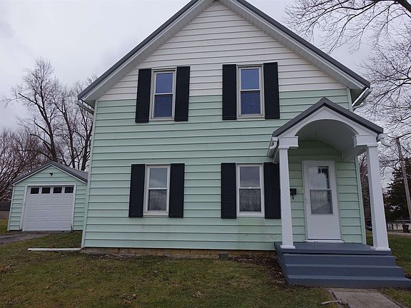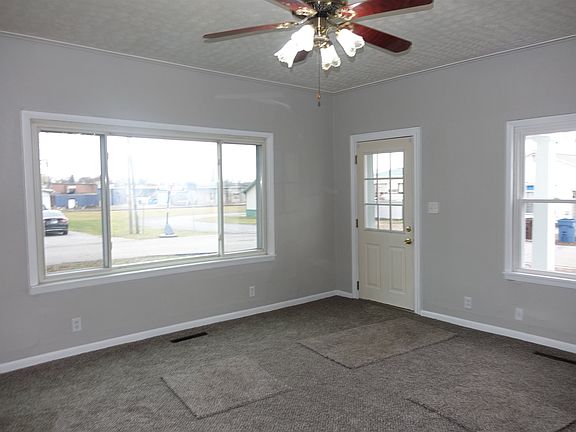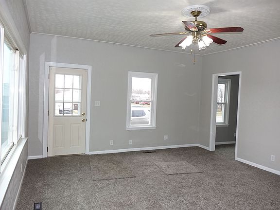 Home has been updated and is move in ready. Brand new metal roof on house and garage, all new flooring in home, new paint, Brand new half bath upstairs (sellers took part of the landing and made a whole new bath), Brand new Gas forced air furnace and central air. Large eat in kitchen, w/gas hook up for range. Laundry room has hook up for a electric or gas dryer. All updated full bath on main level. Almost all the windows are vinyl replacement windows. Upstairs in addition to the new half bath you have a landing, 2 large bedrooms and 5 closets/storage areas. Main level has a smaller bedroom that could also be a den. 1 car detached garage is deep at 12' x 32' long. with an additional metal 10x18 storage building, all on a large corner lot. Property taxes are high till a buyers exemptions are placed on property