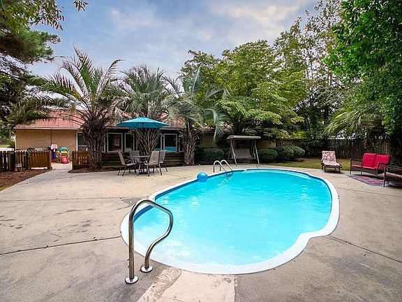 Inground Pool. Golf cart rides to swan lake, jogging along shot pouch, walking your dogs are everyday activities in beautiful neighborhood. Located less than 300' from Brubaker's Caf & Bakery. Less than 2 miles to multiple breakfast/lunch/dinner restaurants, CVS, grocery stores, tennis center w/ pickle ball courts. Laminate Wood Floors. No carpet. Large fenced-in backyard. In-ground Pool. Large Enclosed Sunroom. Sunroom is not included in the heated sqft, however, does have a heating/cooling unit. Backyard Oasis. Wood burning fireplace. Zoned for Alice Drive Elementary & Middle schools - close enough to walk/bike to school!