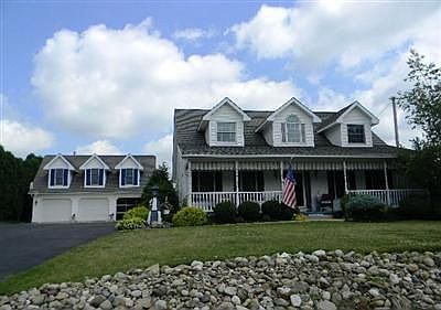 What a unique home with income opportunity! Custom built Cape Cod has a relaxing 40x8 front porch with beautiful country views or walk down street and you're in the midst of Wilmot activities... Best of both worlds! The foyer with hardwood flooring invites you into cozy living room w/custom fireplace, vaulted ceiling, dormers & display shelves. Spacious fully applianced kitchen w/plenty of cabinetry, pantry & bar area. Dining room leads to a private deck and backyard w/Koi pond. First floor laundry. 1st floor master suit w/walk in closet & full bath. 2nd level offers 2nd bedroom w/full bath & loft/bedroom overlooking living rm. Finished Lower level with additional 792 sq ft. has family/rec., bedroom w/full bath & plenty of storage. Detached 3 car garage has a fully furnished 36x25 apartment w/living rm kitchen-dining area, bedroom & full bath w/separate utilities. Approximate $600 mo. income potential. A must see. Rural Development Financing - NO MONEY DOWN!