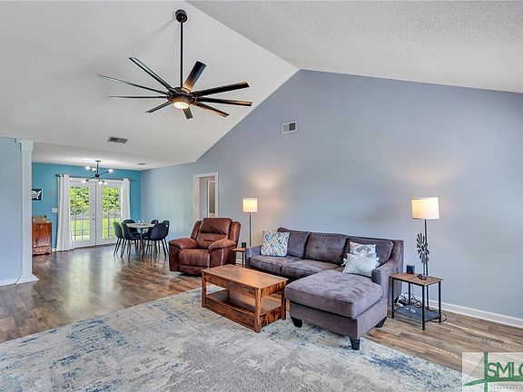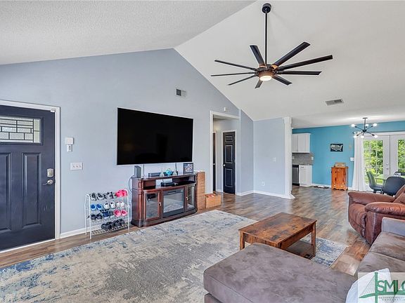 Welcome to this delightful 4-bedroom, 2-bathroom home, perfectly nestled on just over half an acre. The inviting covered front porch sets the stage. Step into an open and welcoming living space that seamlessly flows into the dining and breakfast area, offering a picturesque view of the backyard. The well-appointed kitchen features ample counter space and storage, along with modern appliances including a dishwasher, oven, and refrigerator. Convenience is key with a separate laundry room. The fenced-in backyard is a private oasis, complete with a spacious concrete patio. Beyond the main fence, discover a secondary fenced area featuring a cozy firepit and a shed, providing additional storage and a perfect spot for gathering with friends and family. Just moments to downtown Hinesville and Fort Stewart!
