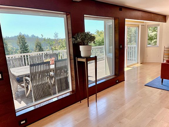 Non-renewable lease for fully equipped home furnished with midcentury collectibles. All utilities paid: gas, water, trash, fiber optic WiFi, and electricity including central air conditioning. Length of lease is negotiable but preferred start date is mid-June 2022 and preferred end-date is Dec. 31, 2022. A somewhat longer lease and other terms are open for discussion but this is a rental for the owners' primary residence. You will enjoy majestic views of redwood trees from almost every room. The hillside positioning of the home offers complete privacy but a friendly neighborhood as well. The master bedroom has large windows looking out across the hills and Bay and adjoins a grand bath area where you can soak in the tub and take in the view. The second bedroom is enormous at over 200 square feet. The third bedroom is small but ideal for an office or for an older child, since it is distanced from the main living quarters. For commutes to San Francisco, this is a choice location for access to Highway 24 and the direct BART line from Rockridge Station. You can take advantage of the quaint shops and restaurants in the Berkeley Claremont neighborhood as well as the College Avenue/Rockridge bustle. This is a secluded location yet the owners use only e-bikes for daily errands and shopping -- two hefty e-bikes with carriers included in the lease if you like! Plus, walk to the wooded trails of the Claremont Canyon Conservatory or bicycle to the forested preserves of Tilden, Sibley, and Huckleberry parks. Based on your preferences, a television, computer printer, streaming speaker, etc. can be included. The kitchen features two ovens and comes with all dishes, gadgets, kitchenware and utensils. The long teak table on the outdoor deck comes with eight chairs. The indoor dining table extends for ten persons. The fireplace is gas only. This home was recently remodeled, inspected, and is in top condition, but to anticipate any circumstance the owners contracted in advance with a plumbing company for guaranteed one-day service. A reliable handy worker is at the ready for anything else. In the garage and utility room there is plenty of space and empty shelving for storage boxes. This home is an ideal solution for anyone who needs a temporary haven while they decide on a longer term homestead. Last month's rent due at signing. Includes two off-street parking spaces and a garage best suited for a single car plus storage. Tenant is asked to water two citrus trees on the deck and one resilient indoor houseplant.