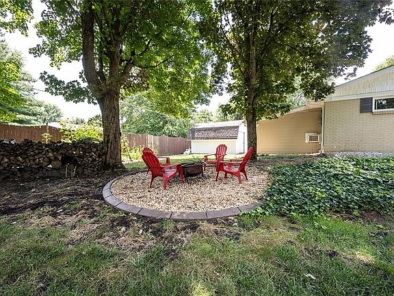 Spectacular, updated, move-in ready ranch sits on beautifully landscaped, 1 acre wooded lot with private outdoor living space including spacious deck, two fire pits and privacy fence! Home features updated kitchen appliances, his/hers closets in master suite and tons of amenities -- composite siding, water heater (75 gal), water softener (2019), newer windows, insulated walls, freshly painted interior, encapsulated crawl space, gas fireplace, newer furnace (2016) & washer & dryer included. Active well available for exterior spigots. Storage building includes garage door opening, new flooring, paint & siding. Oversized garage has wifi garage door openers. Additional room converted from covered porch and can be used as office or family room.