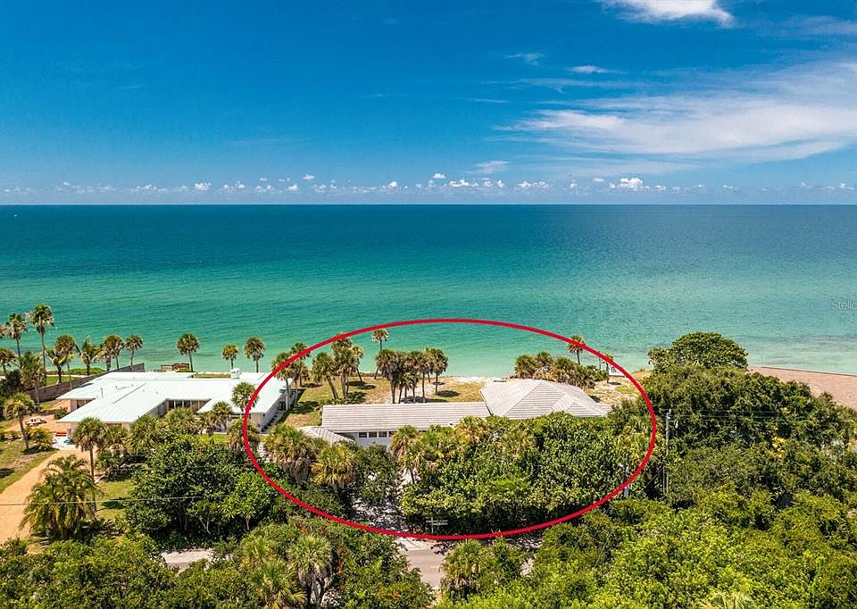 Imagine waking up every morning to full panoramic views of the pristine blue Gulf of Mexico waters and the sound of the surf from your own personal family oasis! Nestled on .60 acres of prime oceanfront property with over 150 feet of coastline on the private north end of Manasota Key, this 3 bedroom, 4 bath POOL home features over 3,300 s.f. of living area and a NEW TILE ROOF in 2017! This open floorplan takes full advantage of every opportunity to enjoy Gulf views with wall-to-wall windows and 8 sets of French doors boasting an abundance of natural light. The main floor features a formal living room, formal dining room, family room, eat-in kitchen, and inside laundry room. The spacious family room overlooks the Gulf and leads out to the beautiful screened-in lanai and Pool. The cook will enjoy the water views from the kitchen that features all stainless appliances and a huge breakfast bar that seats four more and leads to the family room. There are 3 master suites so everyone can enjoy spectacular water views from the comfort of their bed. All three bedrooms feature an ensuite with its own bathroom, walk-in closet, and breathtaking Gulf views. The first master suite is located on the main floor and features an expansive walk out deck spanning the entire length of the home. Upstairs are two additional private suites where your family and friends can soak up the view from their private step-out balconies. The upstairs bathroom also features a walk-out balcony facing the front of the home, where you can relax among the trees for a change of pace. You will appreciate the huge 28-foot-long inside utility room with utility sink and extra refrigerator that doubles as an office, with an entire wall of built-in cabinets and desk, along with an entire wall of windows overlooking the pool and gulf. The attached side-entry 2-car garage has a newer garage door, a battery-backup garage door opener, and a workbench area allowing for plenty of storage for your toys. There is an additional parking area off the main driveway offering an extra space for cars, boat, or RV parking. Additional features/updates include: Concrete Block Construction, 3 separate HVAC units (two of them were recently replaced in 2020 and one in 2013), 2 separate hot water heaters (one with on-demand hot water), irrigation system, new pool cage in 2017, new electrical in 2017, hurricane shutters, handicapped accessible front porch, and security system. The sprawling backyard has natural Florida landscaping with gorgeous palm trees and stairs leading down to your secluded beach. Entertain around the pool while being captivated by the amazing sunsets and dolphin watching from your own backyard, or go fishing in the bay, where the snook, redfish, and sheepshead are plentiful. This home is ideal for year-round residence, snowbirds, or an investment property. Don't miss your chance to live like you are on a vacation in this coastal estate home. There are lots of restaurants on the Key to experience the local cuisine or enjoy dancing to live bands, and so many things to do: boating, fishing, paddle boarding, parasailing, kayaking, and bicycling. Call today to start living in PARADISE! Please be sure to click on BOTH virtual tour links attached - one will fly you over the whole property and right into the house and the other will give you a 3D tour of the home - you will feel like you are there in person before you even step foot inside!
