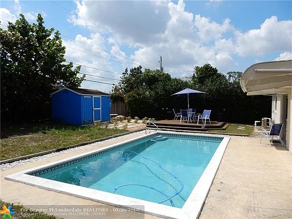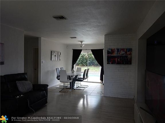 Hollywood 3/2 POOL Home. Enjoy open Living/Dining area. Florida Room remodel boosts LA to approx 1250sq ft, Great for Office/PLAY. Newer Laminate/Tile Floors throughout, rear windows, exterior paint. Roof-2013. Updated Kitchen, Baths, Interior Doors. Tank-less H2O Heater. Master features walk-in closet. Inside Laundry. Large backyard w/Pool, Custom Deck makes space perfect for Relaxing/Entertaining. Pool plumbing updated. Large Shed. Near Cooper City s Piccolo Park, TY Park, Schools, Shopping and Dining.