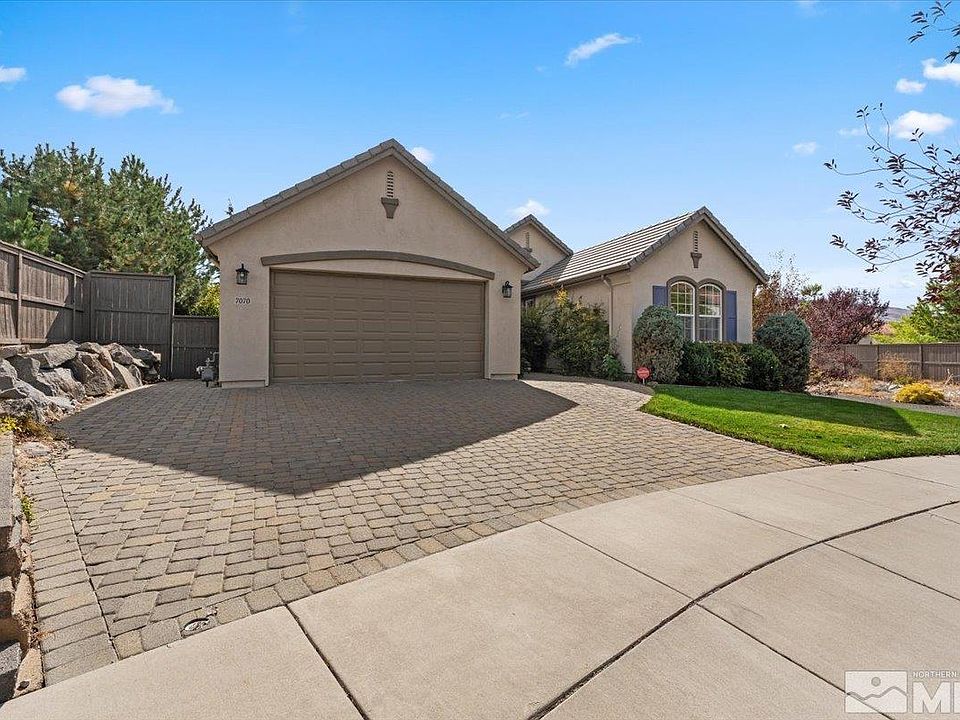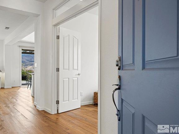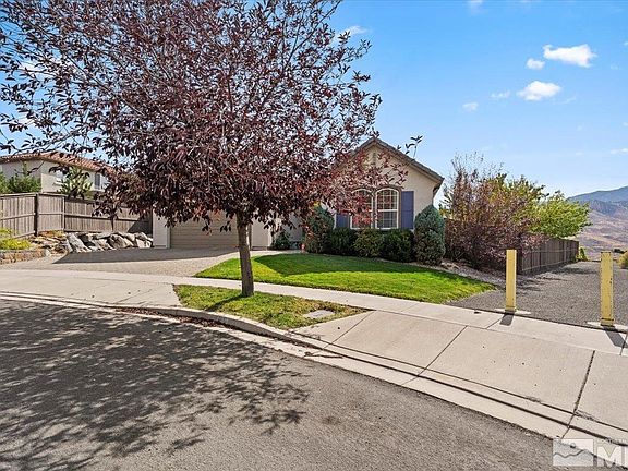 Exquisite Beauty Meets Optimal Location! This (1 owner home) sits on a .26 beautiful lot w/astounding views of Mountains/City/Valley. Your 3 bedroom + den/library home offers a well thought of floorplan by Lennar; perfect for entertaining, you'll appreciate the openness & brightness but yet very private retreat. Nothing in this home has been overlooked w/a ticket price over $150k in upgrades; Water durable /engineered hardwood floors throughout the entire home (1 floor covering)...., First impression of this Sterling Point beauty will make you smile and feel right at home. The cul-de-sac location will welcome you to notice the fully paver-driveway and walkway; you're sure to become distracted as you walk by the deep purple climatic & lush vegetation as you approach the entry door. Walking in, you'll start to witness the architecture Lennar had in mind when designing the floor plan. An office/library immediately grabs your attention on the right as you venture into the open great room/dining room/kitchen area. Ample light-colored cabinets match the granite countertops in your new kitchen. Uplighting, canned lighting & the sun will ensure you have the brightness you need for cooking, canning, crafting etc. Looking forward to the NV winter snowfall? Cozy up near your gas-log fireplace as you watch the snow blanket the mountains. 5 anti-breaking window alarms have the right touch to guard your private sanctuary. Making your way around, you'll notice the guest bathroom has a new toilet (with lift handle and no messy ground sides to clean), a new set-in sink wrapped in a quartz countertop with a tub/shower combo. Let's venture into your master bedroom boasting views of your park-like back yard; high ceilings & a ceiling fan whisk you away into your over-sized master bathroom. Having matching set-in sinks & quartz countertops as your quest bathroom does, you'll appreciate the separate shower & garden tub, the rustic mirrors, linen closet, walk-in closet & private toilet. Now taking you outside into your private backyard--you're sure to have gratitude for the organic fruit you'll enjoy year-after-year; Grapes, Raspberries, Blackberries, 2 apricot trees, 2 apple trees, 1 plumb, 1 peach, 1 nectarine ... (did I mention the kitchen is GREAT for canning)?! You'll wonder how life can get any better as you sit on your patio, gazing at the natural views, stars, sunsets; smelling the roses as they glide by your nose, witnessing the hummingbirds & others zip by to say hi; the elderberry, the flowers, the pavers, the convenient location, the low utilities (new furnace in '23) .... I honestly could keep going on as the listing agent to this beautiful home, but I must leave SOMETHING for you and your buyers to enjoy =)