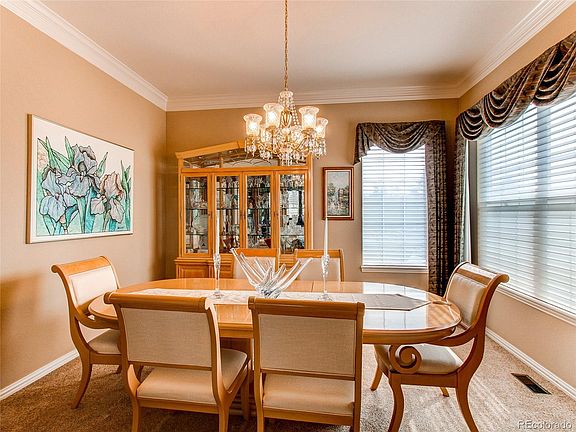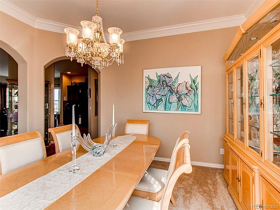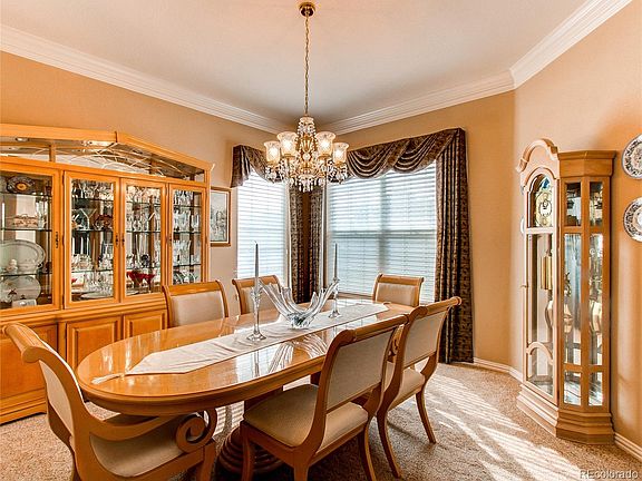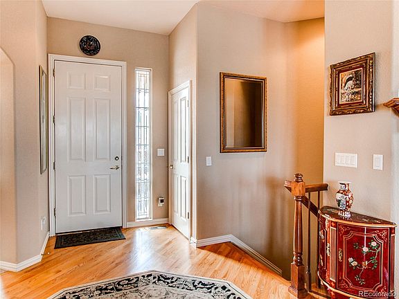 Unexpected and breathtaking expansive mountain views and sunsets are waiting for you in this main floor master home in the highly sought-after Fieldstone at Tallyn's Reach Subdivision. Mountain views from over half of the windows on the main floor, garden level and covered decks. {Wild fires have temporarily obstructed this view.} Open concept with high ceiling floor plan features Impressive hardwood floors, formal dining room with crown molding, designer light fixtures, cozy gas fireplace and plantation shutters throughout. The gourmet kitchen boasts granite counter tops, secured island, gas cooking top, quarry tile back splash, cherry wood cabinets, recessed lighting and large pantry. Relaxing main floor master retreat has amazing mountain views, beautiful powder room with quarry tile double sinks, a private soaking tub, a clear glass-enclosed shower, and a walk-in-closet. The lower garden level features the family/ entertainment room with high ceilings, recessed lighting, built in cabinets, a walkout and mountain views. The lower floor also includes two good sized bedrooms, both with a walk-in-closet, a large storage area in the mechanical room, another walk-in-closet, and a full bath in the hallway. The laundry room with washer and dryer included sits just off the exceptionally clean 3 car garage. The HOA maintains a meticulous over 12,000 S/F yard which offers the home a gorgeous curb appeal. Hail resistant roof covers the home. Community Amenities includes a pool, tennis courts, clubhouse, and parks and trails. Close to shopping, dining, golfing, entertainment, and Aurora Reservoir. The home owner has done a outstanding job of keeping this home exceptionally clean and well maintained. This home is in move-in-condition. You Do Not Want to miss this gorgeous home!!