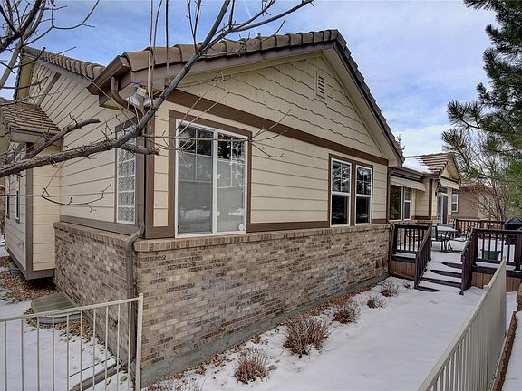HEATED DRIVEWAY & STEPS , Backs to open space, 3 BD. + study. 3 full baths. Upgrades and designer features . Lg. gourmet kitchen with 36 inch 5 burner gas cook top, dbl. oven. Formal D.R. Master bd. has 2 closets & lg. 5 pc. bath. Study with built in shelves. Lg.673 sq. ft. 3 car garage. Concrete tile roof. Open & inviting. Lg. trex deck & small yard to enjoy the mature landscaping and open area. Short walk to Grandview H.S. In top Cherry Creek School system. HO dues $160.00 per month incl. front yard care + snow removal*. Close to shopping, dining and medical care. Approx. 1 mile to E470. 20 minutes to DIA. 15 minutes to DTC. Saddle Rock Golf Course & park are near by.
