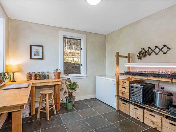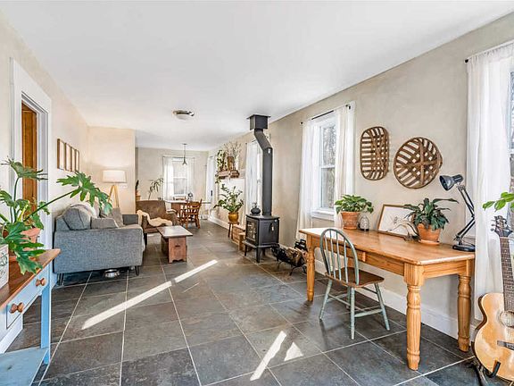 Just 15 minutes outside Montpelier, this charming homestead awaits you sitting on an acre and a half beautifully landscaped with a perennial garden of medicinal herbs, a perennial food garden terraced and fenced with strawberries, asparagus, rhubarb, and blueberries, perennial flower beds, a chicken coop and a recirculating pond. This home has beautiful natural light and a spacious layout for its size. Its beautifully decorated and energy efficient with radiant heat under the unique slate and hardwood floors, an updated kitchen and new Heathstone wood stove. There are three large bedrooms upstairs and a cozy bathroom with relaxing claw foot tub. On the main floor, a fourth bonus room can easily be used as a 1st floor bedroom or office, a full bath with large tiled walk in shower and a spacious living room which walks out to a deck overlooking the beautifully landscaped yard. A path just outside the front door leads you up the hill to the surrounding 250 acres of forests and fields with an extensive trail network fully accessible for recreation by the owners of this home. Showings start Saturday 4/17.