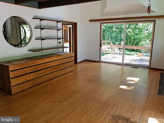 Come live as part of nature in an almost treetop setting. Unique custom design is a delightful place to call home full-time or as a part-time retreat. Large decks, balconies, huge windows, wood shake roof, commanding stone fireplace are part of the architectural features that make this a special property. Great room has space for dining and seating areas and is open to the kitchen. Sliders go to two enormous decks. Master bedroom was added on main level and has its own bath and balcony. Access to second floor and lower level are by an iron spiral staircase. One leads upstairs to two bedrooms, one the original master bedroom, a hall closet and a bath. The other part goes downstairs to a partially finished level with laundry, storage closets, room with ground level walk-out door and another room to finish and enjoy. Huge open front garage structure is in front of the entrance to the house and offers even more possibilities for your vision. An incredible array of mature trees surround you and are what makes you relax and feel like you are miles away from the stresses and pace of everyday living. Turn this exceptional house into your personal oasis. The beauty of nature and natural light are inside this house and yet you are close to the amenities of New Hope, Bucks County and to commuting routes to NY, Philadelphia, Princeton. This is a slice of heaven that provides both country and sophisticated living. Welcome home!