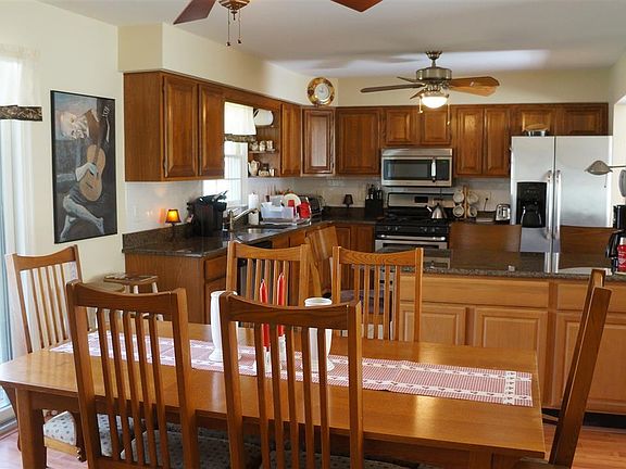 Custom built Ranch nicely appointed. Stainless steel appliances and granite counter tops in kitchen. Basement with exterior entrance. 2 car garage has additional workshop area. Sunsetter automatic awning on front porch, fenced rear yard, circular driveway. Home shows great.