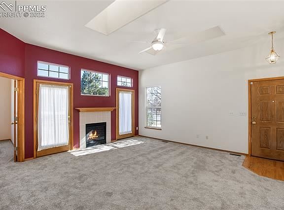 Welcome home to this one-owner outstanding Open Floor Plan Ranch Townhome with character and charm built by Classic Homes. Situated in the highly desirable community near Woodmen Rd, Austin Bluffs, and Dublin Blvd, it has Central Air-conditioning and NEW Carpeting & Paint throughout. This incredible 2,512 sf Open Concept Ranch Home with 9' Ceilings has 4 Bright & Spacious Bedrooms, 3 Bathrooms, Builder finished awesome Basement with amazing Family Room. Step into a large Living Room/Greatroom with Skylights flooding in natural light, an elegant Fireplace, and a walkout to a private balcony Patio for relaxing and entertaining. Spacious and delightful Master Bedroom suite with makeup/dressing area has an adjoining Bathroom with Walk-in Shower. There is another main level Bedroom near a full Bathroom. The cheerful gourmet Kitchen has great Cabinetry, Pantry, Laundry, and Newer stainless-steel appliances: Frigidaire Cooktop Stove (2020), LG Refrigerator (2019), Maytag Dishwasher, Washer and Dryer (2018), and a Microwave. Delightful Dining Area, adjoining the Kitchen, has a superb Bay Window and a light & bright eating area. Over 1,200 sf Builder Finished fabulous Basement has 24'x17' entertainment-sized Family Room, a 17'x14' King-size Bedroom, another Bedroom w/Walk-in Closet, plus a Full Bathroom. Large Double Garage with extra space has a Handyman's Workshop and storage shelves. Furnace Replaced in 2021, A/C in 2018, Hot water Heater in 2015, and Re-roofed in 2013. Conveniently located near restaurants & shopping with an easy commute to Peterson, Ft. Carson, and Air Force Academy. You will want to be the first to see this Exceptional Property in Move-in-Ready Condition, at an Incredible Price, and Call it Home.