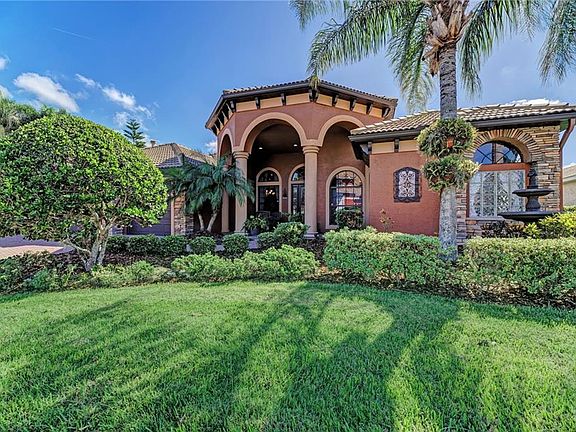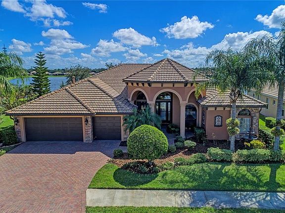 New Price! Magnificent long lake views from this stunning listing. Remarkable curb appeal.. Beautifully upgraded elevation with stacked stonework, custom pavers lining the walkway, front porch and driveway. Tropical and lush landscaping. This "Strauss" model is an award winning floor plan featuring 4 large bedrooms, a separate den/office AND a hobby room. The heavily upgraded and open chef's kitchen is the heart of the home here.. so smartly designed. Features tall and rich espresso cabinets, thick slabs of granite, custom tile backsplash and almost new stainless steel appliances including a french door refrigerator. All four bedrooms plus the den + hobby room have new high quality mahogany engineered hardwood floors. The master suite is spacious w/ a large bump out overlooking the water .. useful as a book nook, sitting area or second office. Gorgeous custom window treatments, high end fans and fixtures, extensive use of trim, crown molding and several tray ceilings. The private pool area with water fall feature is beautifully done..large lanai with travertine, an outdoor kitchen w/ everflow gas grill, one of a kind pergola that you just must see. (Amazing setting overlooking the lake) The dual zoned AC units were just replaced with high efficiency systems in 2016+2017. Hurricane shutters included. Gated upscale community with nice amenities.. large heated pool, fitness center + playground.. super location.. close to the UTC mall, the new Whole Foods, downtown Sarasota and our world famous beaches.