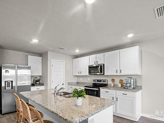 Coastal Comfort Near the Beach – Gold Fortified Home with Huge BackyardWelcome to 7074 Abigail Street in Gulf Shores—where quality meets convenience in one of the fastest-growing areas along the coast. This Gold Fortified, 4-bedroom, 2-bath home is located just minutes from white sand beaches, great restaurants, and shopping, offering the lifestyle you’ve been dreaming of.Tucked off County Road 8, the home sits near the community pool and just down the road from the new Gulf Shores High School currently under construction. Even better, a large community park is planned just across Coastal Connection Road, bringing even more value to the area.Inside, the popular Booth floor plan offers an open layout with a spacious 24’ x 15’ living room filled with natural light. The kitchen is designed for gathering, with a large island, stainless appliances, and great flow for entertaining. The primary suite features a luxurious soaking tub, 5-ft shower, dual vanities, and a walk-in closet that makes winding down a joy.Step outside to the professionally finished front porch and back patio, where you’ll enjoy one of the largest backyards in the neighborhood—perfect for entertaining, gardening, or relaxing in your own private space. The garage has also been professionally finished, giving it a clean, polished look.Built with smart home features, energy-efficient windows, and low-maintenance vinyl flooring, this home combines comfort, style, and peace of mind.This is more than a house—it’s a place to plant roots, grow, and make lifelong memories. Come see what life could look like at 7074 Abigail Street.Seller is a licensed real estate agent in Alabama. Buyer to verify all information during due diligence. Easy to show