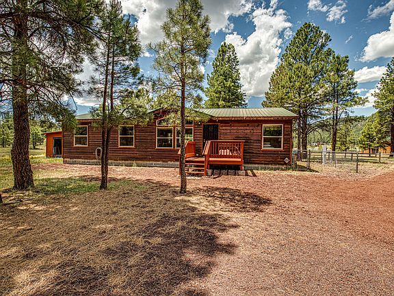 Beautiful Cabin In The Woods! This amazing 3 bedroom 2 bath, with living-room, family room & den home backs up to State & Trust land and is a premium lot. Perfect 360 degree views from the 16'x40' rear deck and 10'x10' front deck. The interior has vaulted ceilings, a prismatic window dormer, an awesome open floorplan perfect for entertaining, stone wood burning fireplace, all doors lead to the decks and over-sized windows to soak up the views! The exterior is cedar lap siding over OSB panel with Tyvek wrap for added insulation and a metal roof. The construction is 2x6 walls with R-19 insulation, R-42 in the ceiling & Low E vinyl dual pane windows. Off the rear deck is a flagstone walkway out to an Amazing fire pit. There's a large shed with a garage door to store your ATV and much more!