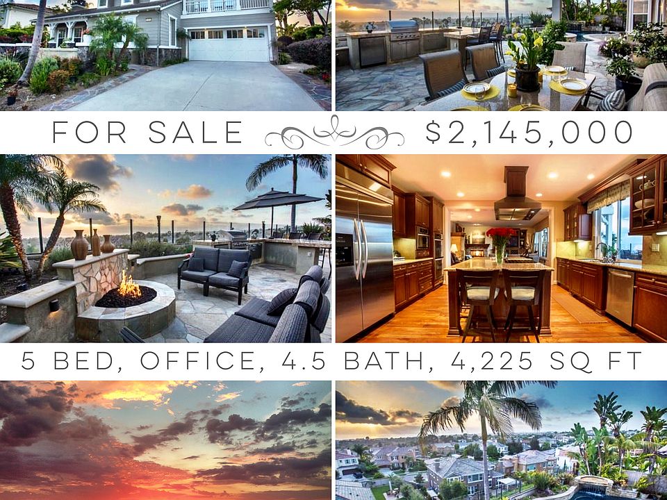 Spectacular sweeping ocean views from 1st and 2nd floor west side windows. Top of ridge Bay Collection premium location. Luxurious board wood floors, 5 BR + office+retreat, 4.5 bath, en suite BR and full bath downstairs (+ powder room, too). Ocean view master BR + view deck and retreat. Flagstone pool, spa and loggia and fire pit. Granite BBQ center. Granite kitchen, dual convection ovens, 6 burner + griddle range, Kitchen Aid fridge, sconce lighting, Travertine floors and back splash, walk in pantry. See suppl.