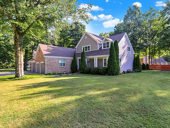 Welcome to this beautiful 4-bedroom, 2.5-bathroom home, nestled on a stunning 0.75-acre wooded lot. Over 2,700 square feet of living space, this home is both spacious and inviting. The grand living room features a dual fireplace that seamlessly connects to the kitchen, perfect for cozy gatherings. Enjoy the bright and airy sunroom, complete with a spiral staircase leading to a charming loft area. The private master bedroom suite offers a luxurious whirlpool tub and ample closet space. The versatile 4th bedroom on the upper level can serve as a playroom, office, or exercise room and attached 4-car garage. Additional highlights include new roof, gutters, downspouts and guards, new hot water heater, geothermal system, water softener and so much more. This home offers plenty of storage and space for all your needs. Don't miss out on this unique property!