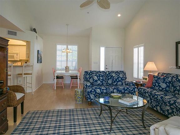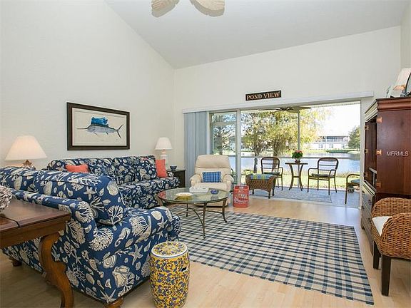 This is a fabulous first-floor turn-key furnished, two-bedroom, two-bathroom condominium with an attached garage. It is beautifully decorated with a Florida tropical flair. The open floor plan with volume ceilings in the living and dining rooms makes this area light and bright. The master bedroom is spacious and features a walk-in closet, and the master bathroom has dual sinks and a walk-in shower. This unit has a tranquil pond view from your large screened lanai and preserve views out your front door. Updates include new laminate flooring throughout most of the condominium, Bahama shutters in the living room, new refrigerator, new pullout sofa in the living room and fresh paint on the exterior. Cypress Strand is within Tara Preserve in a maintenance-free golfing community with lots of amenities, and a golf membership is not required. The community offers a heated pool, lighted tennis courts, a community center and golf. Tara is located convenient to beaches, shopping, sports venues, dining and theaters. It is less than one hour to Tampa and 30 minutes to the Sarasota-Bradenton International Airport.