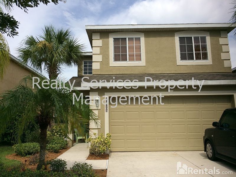 Pool home located on the waters of Heritage Harbour, surrounded by lush landscaping wrapping around from your front door to your pool side entrance. Pool is enclosed with oversized screened in lanai with views of the community waters. This home offers a beautiful kitchen with stainless steel appliances, decorative backsplash and extended kitchen counter space for extra seating, spacious pantry and wood cabinets Downstairs offers a half bath, with separate laundry room with additional cabinet space. Plus living and dining room combination and eat in kitchen space. Your upstairs has a full extra living space, great for entertainment or an office, plus your master bedroom and bathroom, 2nd and 3rd bedroom and 3rd bathroom. Master bathroom has walk in closet and shower, with separate bathtub and bath closet.