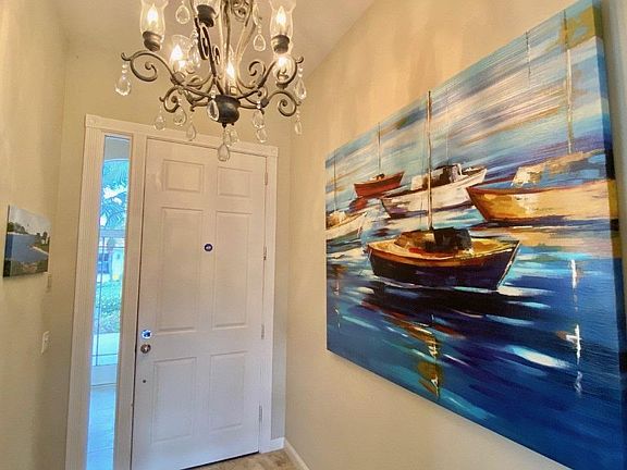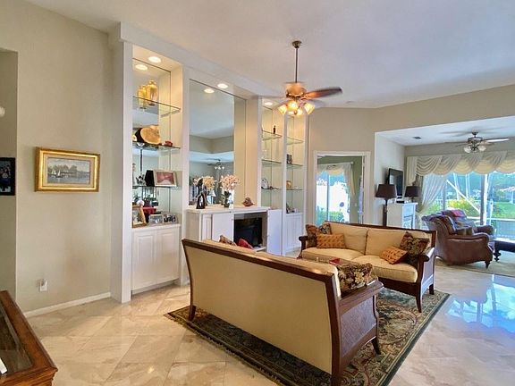 Stunning, gorgeous, ready to move in!This expanded Oakmont model has upgrades galore. Custom marble flooring through the main living areas and den, wood floors in all bedrooms. Granite counters, upgraded appliances, custom window treatments. Built in wall unit in the Great Room. The backyard is an oasis, overlooking the tranquil lake, one screened area perfect for evening dining, one open area with in ground heated spa,ideal for lazy afternoon lounging. The master bedroom has generous closets and a double bathroom arrangement, one side has the shower, the other a Roman tub, both have access to the large walk in shower. The laundry room has a deep utility sink, front load washer and dryer. The garage has custom cabinets, stained concrete floors. Central vacuum, central alarm