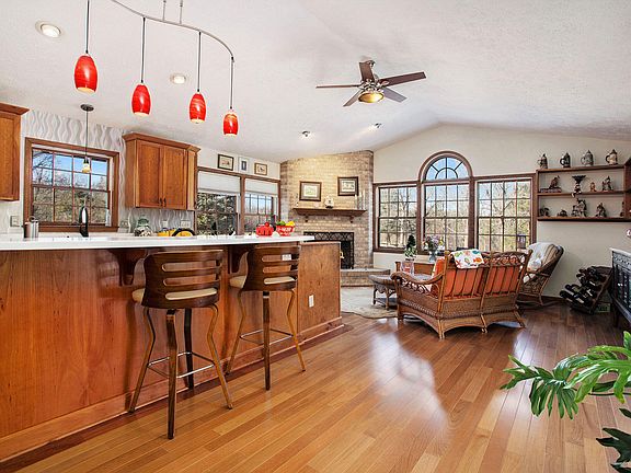 SO MANY UPDATES! This expansive open-concept ranch sits peacefully on large lot with gently rolling hills and gorgeous landscaping. Home features newly finished basement with fireplace, bar, entertainment area, full bath, great room and bedroom with walk-out. Main level boasts not only dream kitchen with stainless steel appliances, double convection ovens, great lighting and cabinet space, but living area with gas fireplace, huge windows letting in plenty of natural lighting, walk-out to deck, and more! You'll not only find peace in the serenity of this location, but peace of mind with included Home Warranty, 50 year warrantied shingles, new water softener, warrantied water-proofing, and yearly maintained furnaced. Conveniently located just minutes from schools, shopping, and dining.