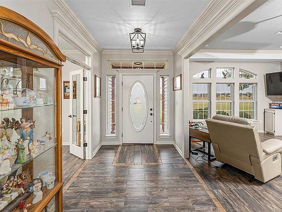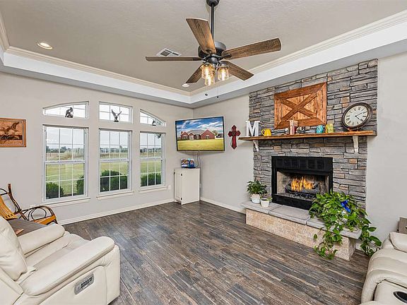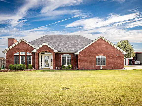 Come see this beauty in Country Aire Estates in Elgin! his one owner brick home sits on approx. a 1 acre lot and features 3 bedrooms, an office, 2 bathrooms, a 2 car garage, and a gorgeous inground pool! The home was renovated in 2021 with fresh paint, new wood like tile throughout the entire home, new lighting, new fixtures, new hardware, Thermal Pane Low-e windows, and new locks. Gorgeous neutral modern color scheme. The kitchen has a great center island, eat-in kitchen, stainless steel appliances and beautiful granite counters. The living area has great natural lighting and a cozy ventless propane fireplace. The main bedroom is spacious with its own patio entrance. The main bathroom has a huge walk-in shower with a bench, double sink vanity and nice walk-in closet. The other spare bedrooms are spacious with great closet space. Hall bathroom has a double sink vanity and tub/shower combo. The office has a built-in desk and cabinets and a nice french door. There is a water softener as well as extra insulation blown in the attic and north garage wall. Outside let the fun begin with the inground chlorine pool (4-10 ft) with a slide and diving board, all fenced in. You will also love the 30x40 workshop with a 16x13 door, half bath and spray foam insulation. Attached to the shop is a lean-to measuring 18x48 with a 50 amp plug, 110v power and lighting, great for an RV, boat, etc. Installed in the main garage is a Protran Transfer Switch for a generator hookup. The home is equipped with gutters and a sprinkler system as well. Minutes from Medicine Park, Mt Scott, Lake Lawtonka as well as a short drive to Lawton/Ft Sill.