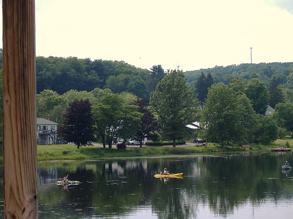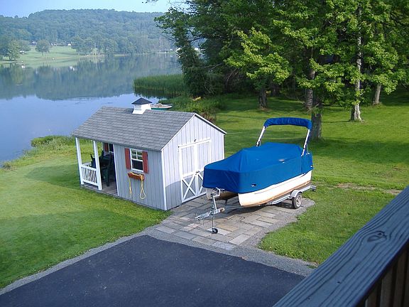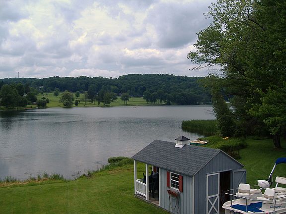 Year round Lake front home on Lake Montrose built in 2003. Eat in kitchen with custom cherry cabinets, whirlpool refrigerator and stove kitchen aid dishwasher double pane tilt windows throughout . Large walk-in-pantry.Living room has built -in corner gas fireplace with beautiful views of the lake. French door opens to 10x26 porch overlooking lake and golf course. Up-satires has two bedrooms and a bath with custom cherry cabinets and linen closet. Down-stairs storage room has upright freezer ,bath has whirlpool washer and dryer. Family room has fireplace ,down stairs bedroom being used as a office. Outside has cottage style shed & invisible dog fence. Pontoon boat row boat and all large appliances are included. Furniture is optional. Paved road with water and sewer. Walk to stores and restaurants. New hospital and library being built. Located close to Elk Mountain Ski area in the beautiful Endless Mountains of PA. About 20 minutes to 2 state game lands. Close to Rails To Trails Neighborhood Description Neighbors get together for golfing ,kayaking and socializing