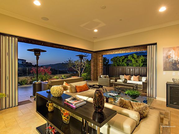 RARE Sandalwood CANYON RIM Plan2 home w/ UPGRADES WELL BEYOND BUILDERS MODEL HOME. Award winning Floor Plan w/ Accordion Doors that open ENTIRE Great Room to Covered Loggia & Rear Yard where you enjoy PANORAMIC CANYON VIEWS & BREEZES. Exquisitely upgraded w/ Dual Zone A/C, 7.2 Kw SOLAR, Walk-In Wine Cellar, Siberian Oak Hardwood, Spa Shower, Japanese Soaking Tub, Plantation Shutters, Drought Tolerant Landscape, BBQ Island, Outdoor Heater, Surround Sound & more! Located within Sandalwood, the premier neighborhood within Phase 2 of the sought after master planned community of La Costa Oaks this is a home not to be missed. Absolutely stunning in every way the owner chose nearly all the upgrades in the builders model home and kept going and going! Out front the low maintenance drought tolerant landscape always looks perfect. As you approach the front door you enter a cozy courtyard with Waterfall Fire pit feature. Impeccably maintained it looks brand new throughout! The entire first floor has 4 piece pattern Nuvolato tile floors that extend out to the Loggia and backyard hardscape creating a seamless transition from indoor to outdoor living. Once out back you can enjoy the best of Coastal North County Living with beautiful VIEWS accentuated by the glass wall view fence and cool breezes. The Gourmet Chefs Kitchen has an extra large island, Two Tone Cabinets, White Ice Granite, Bosch Stainless Steel appliances, top of the line Thermador Fridge, plentiful pantry space and a spacious breakfast nook. For the Wine Lover, the downstairs den has been converted into a Walk In Climate Controlled Wine Cellar designed by Vintage Cellars. Contemporary staircase with steel rods and espresso wood provides the perfect transition from the first floor to the second. The spacious master suite features a large balcony that is the perfect place to enjoy the VIEW. The upgraded master bath includes a freestanding Japanese soaking tub, Spa Shower (6 heads), his and her's walk-in closets & Calcutta Mist Marble Counters. Upstairs there are 2 additional bedrooms, a laundry room and a large loft that could easily be a 5th BR. Downstairs there is a private suite for your guests w/ full private bath and doors leading to the back patio. Homeowners in La Costa Oaks enjoy use of 2 community pools, a clubhouse with catering kitchen, workout room, trails and parks. Kids attend the highly acclaimed Encinitas Union and San Dieguito Union Schools. This is a truly rare opportunity and not to be missed. Come see it today before its gone!