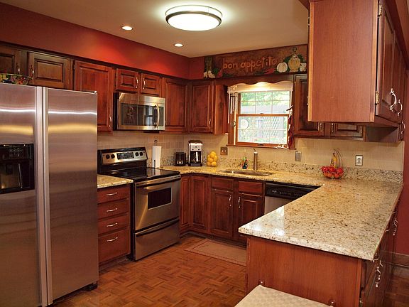 Beautifully maintained classic home on cul-de-sac with wooded backdrop. Curl up on window seat in Breakfast Room with a good book. Granite counter tops, stainless appliances. Lower Level is entertainers haven with wet bar, casino carpet and walkout. Screened porch with skylights leads to deck.
