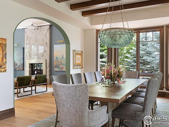 Indulge in a luxurious country club lifestyle in this turnkey, beautifully remodeled home featuring exquisite living spaces, 5 en suite bedrooms upstairs, an ultra-private 1-acre lot & a highly desirable location bordering the 9th hole of Boulder Country Club. Inside this masterpiece, where no expense was spared in the 2021 renovation, sprawling interiors boast unmatched construction quality, premium finishes & carefully curated designer details, creating a magazine-worthy ambiance throughout. Relax in the formal living room & plan your next dinner party in the formal dining room surrounded by a peninsula fireplace, designer lighting, beamed ceilings & walls of windows. An archway leads to the great room with a circular chandelier and marble fireplace. Chefs will adore the open kitchen featuring custom cabinetry, designer tile, stone counters and state-of-the-art appliances. Ascend the central staircase to explore the 5 spacious bedroom suites on the upper level, each finished with roomy closets & spa-quality bathrooms. The owner's retreat is a tranquil sanctuary where a fireplace warms a king-size bedroom & a sitting room that opens to a private balcony. The en suite bathroom impresses with a freestanding soaking tub & a benched walk-in steam shower for two. Take the stairs or your personal indoor slide to the lower level, where fun & games await with a pool table, golf simulator, movie lounge, kitchenette/wet bar & more. Outside, stone patios welcome outdoor entertaining alongside a fire pit, summer kitchen, Jacuzzi and pond with running waterfall. A heated driveway, 5 car garage & separate golf cart garage add plenty of parking. Just 200 yds away, the Boulder Country Club clubhouse offers year-round events, restaurants, an athletic center, indoor and outdoor indoor and outdoor swimming pools, tennis and pickleball courts, 18-hole and par 3 golf courses, a driving range and putting greens to complete your desirable golf course lifestyle.