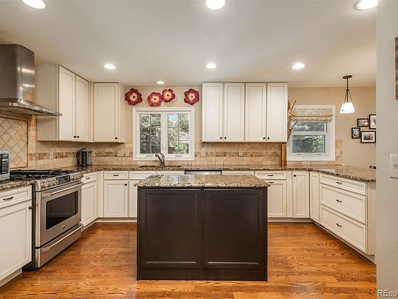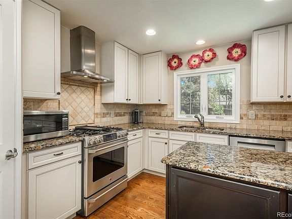Welcome to 7076 S Niagara Court, a beautifully updated tri-level home ideally situated on a premium corner lot at the end of a quiet cul-de-sac in the highly sought-after Homestead in the Willows neighborhood. With 5 bedrooms, 5 bathrooms, and an expansive backyard, this home offers a rare combination of space, style, and an unbeatable location within the Cherry Creek School District. Lush, mature landscaping and a charming double-door entry create a warm welcome. Inside, you’ll find gleaming hardwood floors that flow throughout the main and lower levels, enhancing the home’s elegance and livability. The spacious main level wraps around the kitchen—the true heart of the home—and features both a formal dining room and a sunny breakfast nook. The kitchen is a chef’s delight, complete with granite countertops, stone backsplash, stainless steel appliances, and a large pantry. On the lower level, a cozy yet spacious family room awaits, featuring built-in shelving, a window seat, and ample room to relax, gather, or enjoy quiet evenings. Upstairs, you’ll find three generously sized secondary bedrooms, two bathrooms, and a private primary retreat with vaulted ceilings, dual walk-in closets, and a luxurious 5-piece ensuite bath. For added convenience, the upper-level laundry is ideally located near all bedrooms. The finished basement includes a fifth bedroom, full bath, large rec/bonus room, and additional unfinished storage space—perfect for a home gym or future expansion. Step outside to enjoy the covered back patio and a large, flat backyard shaded by mature trees—ideal for entertaining, playing, or simply enjoying Colorado’s seasons. This home is just minutes from parks, trails, shopping, dining, and offers easy access to I-25 and C-470, making your daily commute a breeze. Zoned for top-rated Homestead Elementary and part of the award-winning Cherry Creek School District—this is truly a must-see!