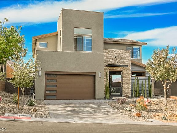 Embrace modern design and breathtaking mountain views in this stunning 3-bedroom, 2.5-bath home with nearly 3,000 square feet of living space on an oversized lot. Situated in the gated community of Terra Luna in Summerlin, this masterpiece is crafted for seamless indoor/outdoor living. Three sets of stacking doors lead you outside to a private oasis, complete with a pebble-finished courtyard, in-ground heated pool and spa, travertine pool decking, and an elevated view of the valley.