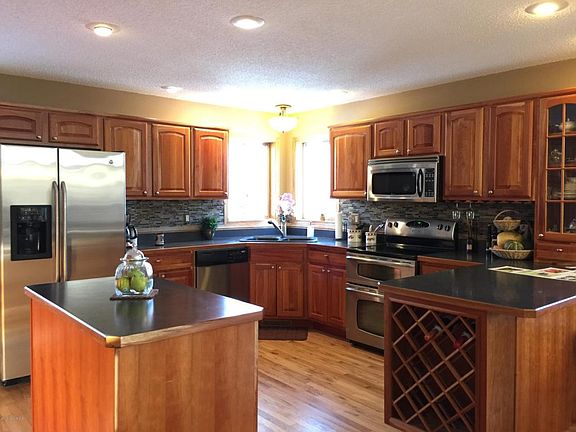 Beautiful custom multi-level home with spacious rooms flowing into the main living areas. Cherry cabinets compliment this Kitchen, stainless appliances, & hardwood floors. Cozy family room with fireplace and walks out to deck. Beautiful landscaping surround the home, with flowering perennials, grapes, raspberries & more. Get your kayak out for spring to use the deeded access to Little Bass Lake.