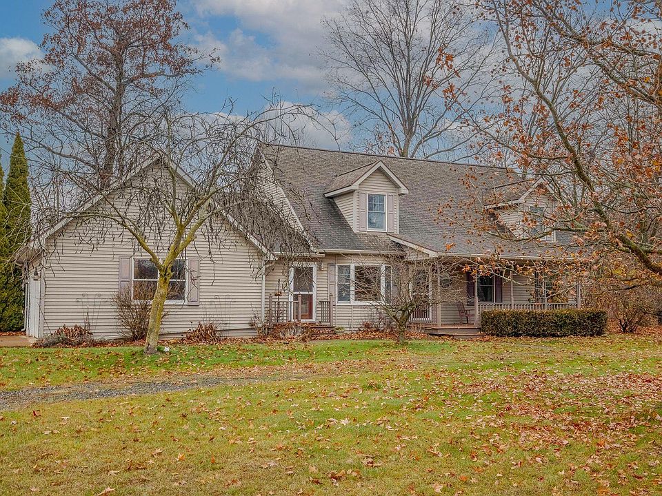 Secluded 5 Bedroom 3.5 bath home on 40 acres more or less. Main floor offers Living rm with gas fireplace, Kitchen with lots of cupboards, ample countertop space. Dining rm has door to rear 3 season rm over looking the Fawn River. Main floor laundry with 1/2 bath in the hallway. 22x15 primary BR with beautiful river views, door to 3 season rm, full bath, walk in shower, jacuzzi tub, 3 closets. Front entry leads to an office & 12x12 den. 2 additional large BRS, one with a sink & mirror, the other has a door to the 3 season room, full bath in the hallway. Upper level has a family Rm overlooking the lower level, 2 additional BRS with views of the river and a full bath in the hall. Full unfinished basement with 9 ft ceilings offers more room for living space. It has a large workshop with bench and steps going up to the garage. 30x70 pole barn, concrete floor, wood burner in the workshop. 2 car attached garage. propane tank owned. 20 acres tillable, rest woods and water. Great Hunting.