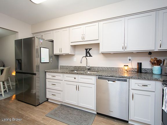 *Please see Agent Notes* Welcome to this inviting first-floor condo in Fern Creek. As you step through the front door, you'll enter the open living and dining rooms. The living area provides ample space for relaxation, featuring a sliding glass door that connects to the patio outside. The dining room flows into the updated kitchen, a beautifully remodeled space with granite countertops, soft-close doors and drawers, and modern appliances. Walking down the hall, you'll find nicely sized bedrooms, a recently updated hall bathroom, a beautifully finished laundry closet, and a hall closet for additional storage. At the end of the hall awaits the very spacious primary bedroom, complete with a walk-in closet and ensuite bathroom. The entire unit features luxury vinyl plank (LVP) flooring throughout. Condo fees cover exterior maintenance, groundskeeping, master insurance, sewer, water, trash, and snow removal.