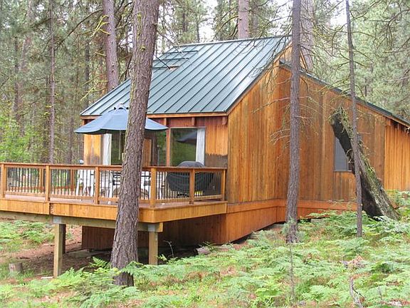 A hillside setting with bracken ferns and old growth ponderosa pines overlooking aspen groves with Black Butte views and National Forest across the street! This well-kept 3 bedroom, 2 bath, 948+/- sq. ft. cabin is fully furnished and ready for your vacation getaways. A short bike ride to three different swimming pool/tennis centers.