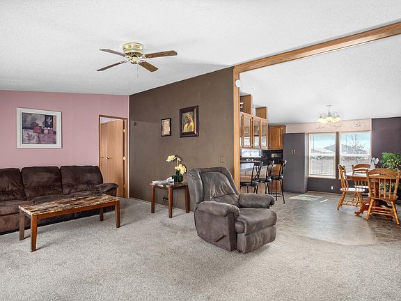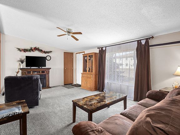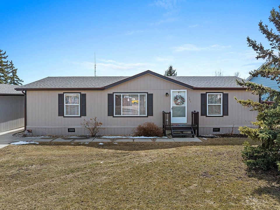 Welcome to this beautifully maintained 3 bed, 2 bath modular home with a two-car garage on just under a 1/4 acre lot. The open floor plan features a spacious living room with an electric fireplace, perfect for those cozy evenings at home. The master suite offers a private retreat, complete with a full bathroom. Outside, you'll find an established garden with rhubarb, peonies, and roses, creating a colorful and fragrant oasis. The shed provides additional storage space for all your gardening tools and equipment. Located in a quiet and private area, this home offers one-floor living, making it ideal for those looking for ease and convenience. Don't miss the opportunity to make this lovely property your own!