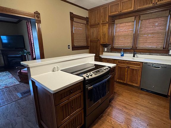This updated 3 bedroom, 2 bathroom home offers all the character with the added bonus of modern updates. On the main floor you'll find an updated kitchen with beautiful wood cabinetry and hard wood flooring that carries throughout the main level. There is a master bedroom with custom closet organizers and close by there is a full bathroom with both a jacuzzi tub and a shower. Laundry is conveniently located on the main floor as well. There is a large dining room with pocket doors to add to the charm, this room also boasts the potential to become a 4th bedroom if needed! The beautiful wood staircase takes you upstairs for two more bedrooms, both with large closets. A 3/4 bath finishes out the upstairs for easy living. Outside you'll be amazed at all the living space-- from the outdoor kitchen to firepit and wrap around porch, the entertainment possibilities are endless. There is an area for a garden all ready for you to plant this spring. There is also a two car garage and storage shed for all your outdoor storage needs. This is a beautiful property that you won't want to miss!! Call your favorite realtor for a showing today!!