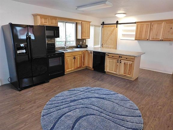 Architecturally designed for efficiency and livability with clean structural lines that provide an appealing modern style. The home includes several appealing amenities that includes a large open living space that encompasses approximately 500 sq.ft. The floor finish extends throughout this area providing versatility of use and flexibility to arrange furniture to accommodate the activity at hand. The living room fireplace provides an appealing focal point for the room with plenty of windows to let in an abundance of natural light. The kitchen features newer cabinets, peninsula stool height bar, closet pantry with barn door, retractable spray nozzle faucet, and stylish black appliances. The appliances include a side by side fridge, glass top range, microwave hood, dishwasher, and as an added bonus the stackable washer and dryer unit also stays. The laundry hookups are currently on the main floor and efficiently located off the hallway. If desired, the laundry could be moved to lower level. The lower level provides endless opportunities for additional living space. The poured concrete basement walls and basement ceiling height lend themselves nicely for finishing. The basement stairway enters into a large open room that is ideal for a future family room. There is already some framing done for a 3rd non-egress bedroom or, with a little extra work, an egress bedroom. The attached garage is accessible from the kitchen & features an auto opener & an attached 10x13 shop/shed.