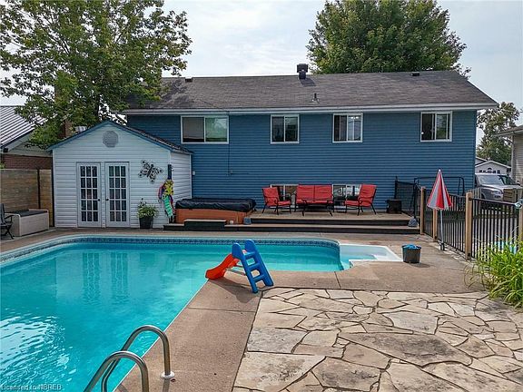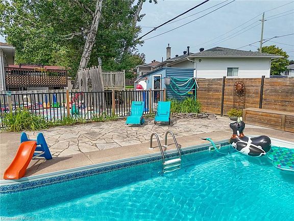 Make a Splash! This family friendly raised bungalow offers a lot of value for a young family. There are 3 + 1 bedrooms, 2 bathrooms and a handy seasonal bathroom by the pool. The full basement features a recreation room, bedroom, bathroom and lots of storage too. With a side door entrance to the basement, it could easily be used for a student rental or perhaps an in-law suite. Lots of possibilities here. The backyard feels like a playground! With a castle, sand play area and a pool, what more could the kids want? Check this one out today!