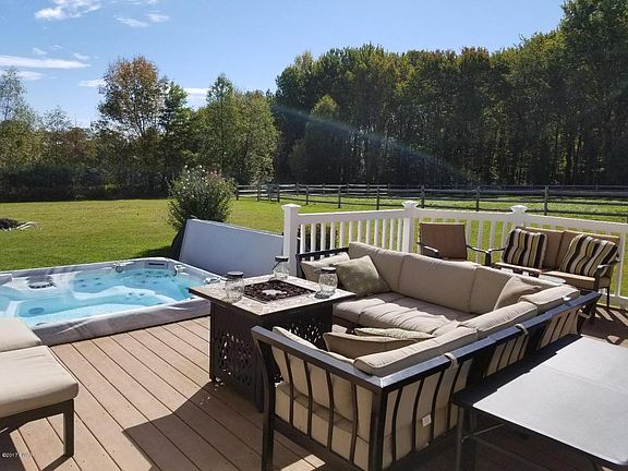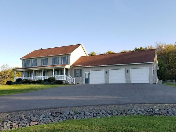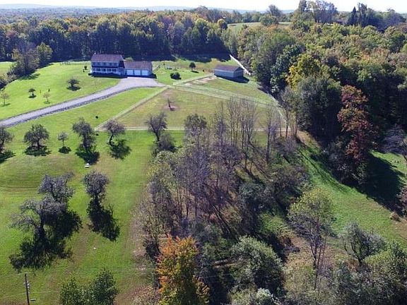 DISTINGUISHED 9.85 ACRE COUNTRY PROPERTY! A long paved driveway guides you to this private estate offering a modern colonial home with 4 bedrooms, including sizable master suite with full bath and walk-in closet. Featuring main level family room, living room with propane stove, large eat-in-kitchen, formal dining room, and a full basement. Plenty of room for your cars and toys in the oversized 3-car attached garage and 30x40 pole barn! Relax on your front covered rocking chair porch or in the hot tub on your sprawling back deck and enjoy the magnificent countryside views and beautifully landscaped grounds including a mature orchard! The perfect blend of home and property. Great for horses!
