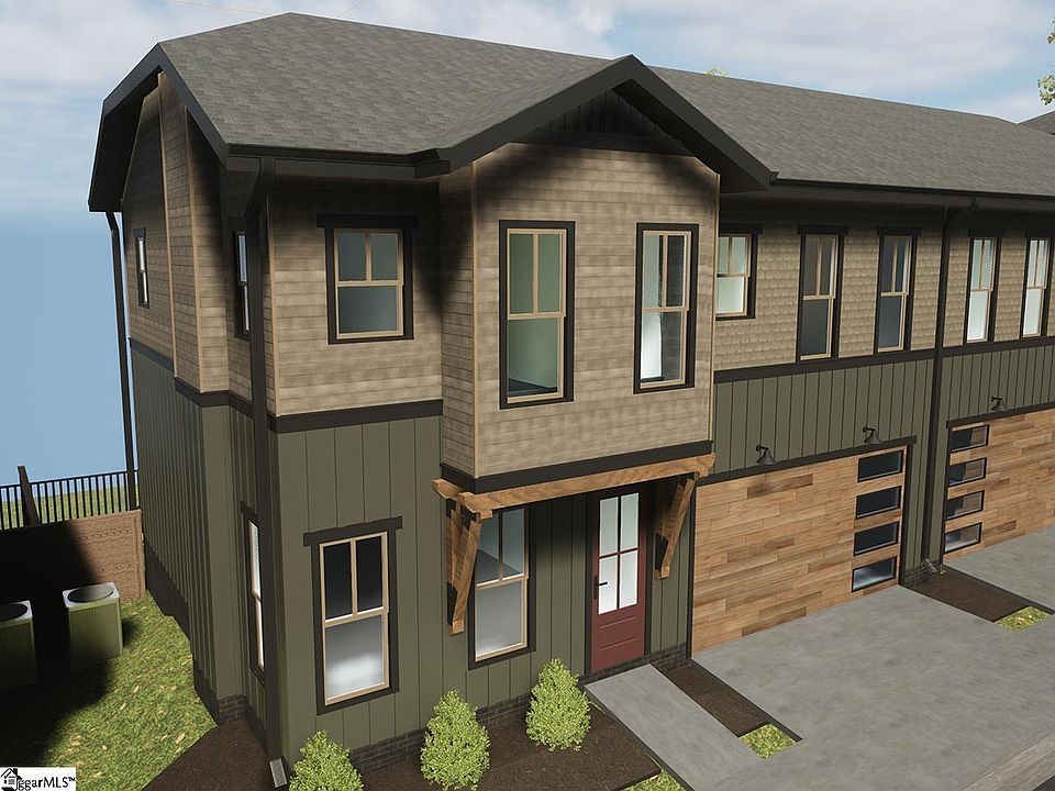 Bohemian Cottages, “More House than Townhouse”, are located in the historic Sterling Community, within a 15 minute walk to Fluor Field and South Main Street in downtown Greenville, SC. With an abundance of windows and doors for great light, side by side 2 car garage, functional entertaining porch, private fenced back yard, this is not your typical townhouse! With 37 years of home building experience, we put our knowledge into practice with each project, and Bohemian Cottages is no exception. This end unit cottage allows for an abundance of natural light and privacy, with a private fenced yard. Upon entering the front door you will walk into the open floor plan great room with an inviting fireplace. Just beyond the great room is the kitchen and dining room with double 9’ sliding glass doors that will take you out to the relaxing Sunset Porch. On the second level you will find the Owner bedroom with a vaulted ceiling, ensuite bathroom with a double vanity, walk-in shower, and a spacious walk-in closet. There are an additional 2 bedrooms, a full bathroom, laundry and a loft area on the second level. There is attic storage with pull down steps, and outside storage for all your needs. Just off the Sunset Porch is the private yard for entertaining family and friends. Listing agent is designer/developer/builder.