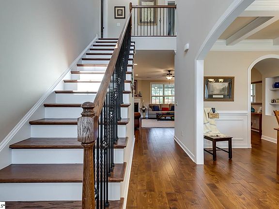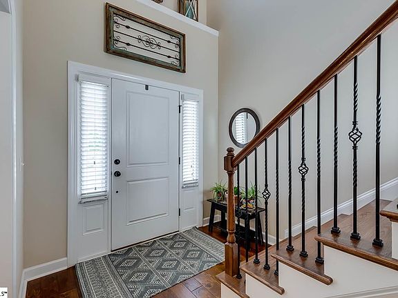 BACK ON THE MARKET!! This 4 bedroom, 3.5 bath home is located in the highly sought after neighborhood of West Farm in beautiful Fountain Inn, SC. This home is located on a quiet cul-de-sac with inviting landscaping and curb appeal. This is a 1 owner well maintained home that shows better then new and you will feel like you are walking into a brand new home. The home has all of the custom home features you would expect to find like extensive crown molding, a stunning coffered ceiling in the dining room, and 5" wide plank gleaming wood floors. Upon entry you are greeted with a grand 2 story foyer with a stunning wood stair case and iron spindles. The great room is open and bright with a gas log fire place and recessed lights. The breakfast area is surrounded by large windows that look out to the backyard where you can sit and watch all the beautiful birds that visit this home. The large kitchen features a butler bar area with built in shelving, tall custom cabinets, under-cabinet lighting, roll-out tray drawers, stunning granite, tile backsplash, and stainless steel appliances, The kitchen has built in speakers with an auxiliary port for you to listen to your favorite tunes. Downstairs you also have a powder room with a brand new vanity and a stunning Jacuzzi brand faucet and a large laundry room with plenty of cabinets, and a granite counter work station. The home also features smart thermostats that you can control from your phone while your away. The grand master suite is on the main level and features a split concept. The master bedroom has a tray ceiling with a new ceiling fan, a large sitting area with an oversized master closet. The master bath has his and hers sinks, a large garden tub, separate shower, separate toilet room, and an additional linen closet. On the second level there are 3 very spacious bedrooms, all with walk-in closets. There are 2 large full baths upstairs and a large step down bonus room that is perfect for a game room or whatever your family enjoys. That's not all, you will get an additional flex room that is perfect for an office. This home has so much space and is perfect for a growing family Out back there is a large screened in porch with a ceiling fan and a privacy sun shade. The yard is beautifully landscaped and fully sodded. The owners added extensive landscaping and full yard irrigation with a drip line along the flower beds. This home is minutes away from all the shops in Simpsonville and the charming down town area of Fountain Inn. Living in West Farm you will have access to a beautiful community pool and cabana area. West Farm is zoned for AWARD WINNING SCHOOLS and much more! Don't miss out on your chance to own this amazing home. Schedule your showing today.